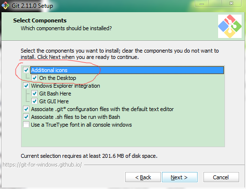 安装过程中,安装位置自己选择,还有就是把添加到桌面勾选上:git,coding,购买域名相关/gitsetup.png)