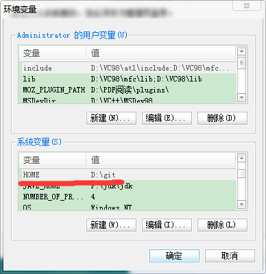 6.配置环境变量,以win7 为例,在我的电脑点击右键,属性,高级系统设置,环境变量,在系统变量里看一下有没有HOME变量,没有的话自己新建一个,并且添加值 D:\git:git,coding,购买域名相关/home.png)