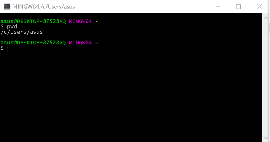 打开git bash,输入命令pwd(Print working directory),显示当前路径,我们可以看到是在C盘里。:git,coding,购买域名相关/pwd.png)