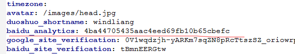 打开hexo的配置文件, 新增字段 baidu_analytics 字段,值设置成刚刚复制的:Next主题相关配置/ana.png)