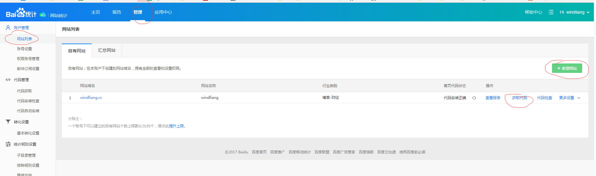 进入百度统计,注册百度统计站长版账号,然后添加自己的网站,并点击获取代码:Next主题相关配置/b.png)