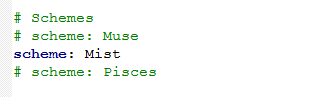 next提供了,三种风格供选择,打开next的配置文件(next文件夹下的_config.yml):Next主题相关配置/style.png)