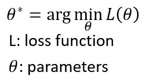 也就是找一组参数 $\theta^*$ ,然后使得 Loss function L 取得最小值,即用数学表达式为