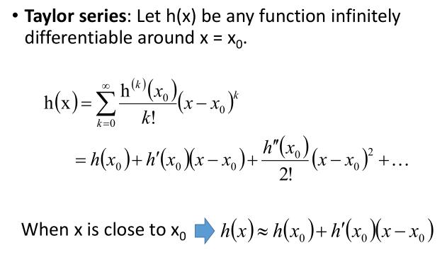 只要 x 足够接近 $x_0$ ,我们可以近似的取到 h 的一阶导数,后边将用到这个公式。