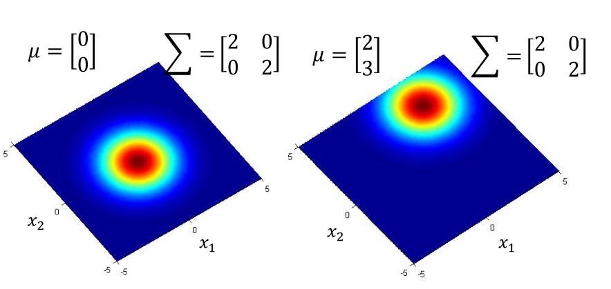 如果 x 是 n 维向量,那么D = n ( 相当于常量 ), $\mu$ 是 n 维向量, $\Sigma$ 是 n × n 矩阵。