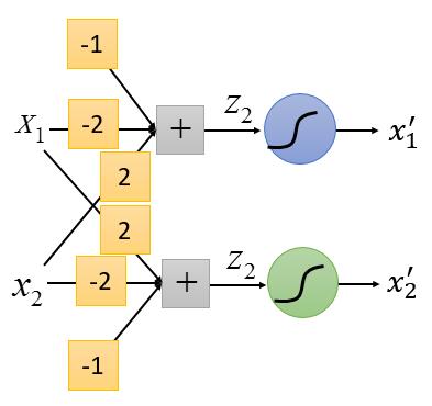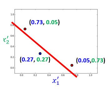 然后把每个数据代入,求出新的 x1 ,x2 如下: