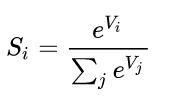 假设我们有一个数组 V,Vi表示V中的第i个元素,那么这个元素的Softmax值就是